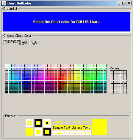 Similarly, if you want to change the Sell/ Bearish bar colors, you can select "Configure"=>"Change Chart Bear Color" from the menu.